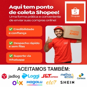 Em nossa loja você pode encontra um serviço exclusivo de postagem dos seus produtos para diversas transportadoras e Marketplaces. Aqui aceitamos: Shopee, Melhor Envio, Loggi, Jadlog, J&T Express, Correios, OLX, Shein (J&T) e Mercado Livre (Correios)